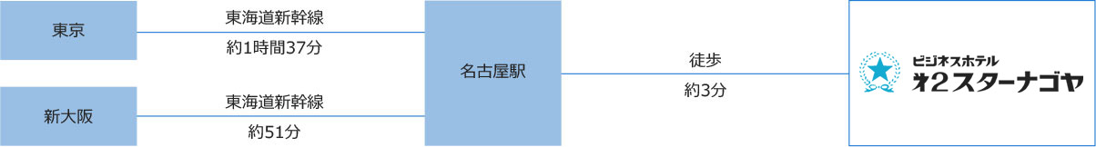 スターナゴヤグループは名古屋駅新幹線口より徒歩3分の場所に位置し、